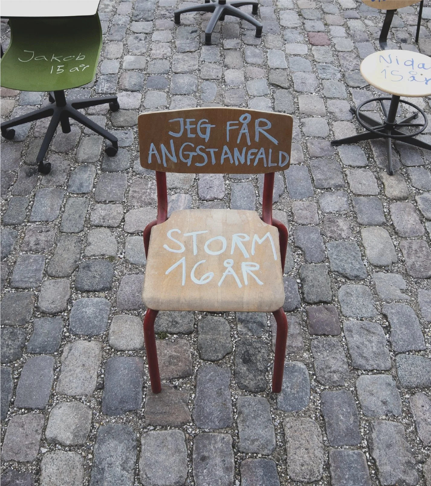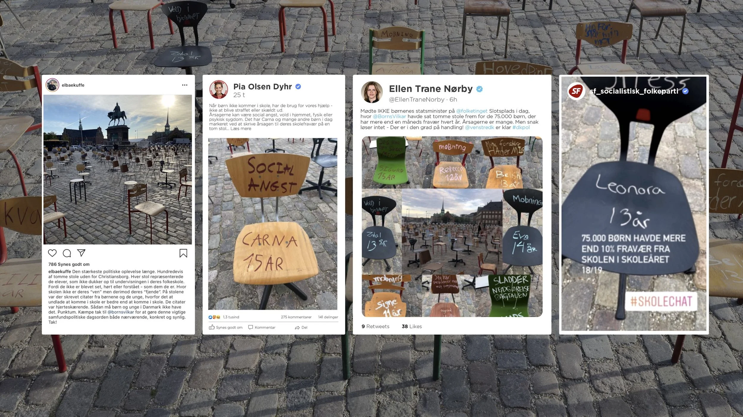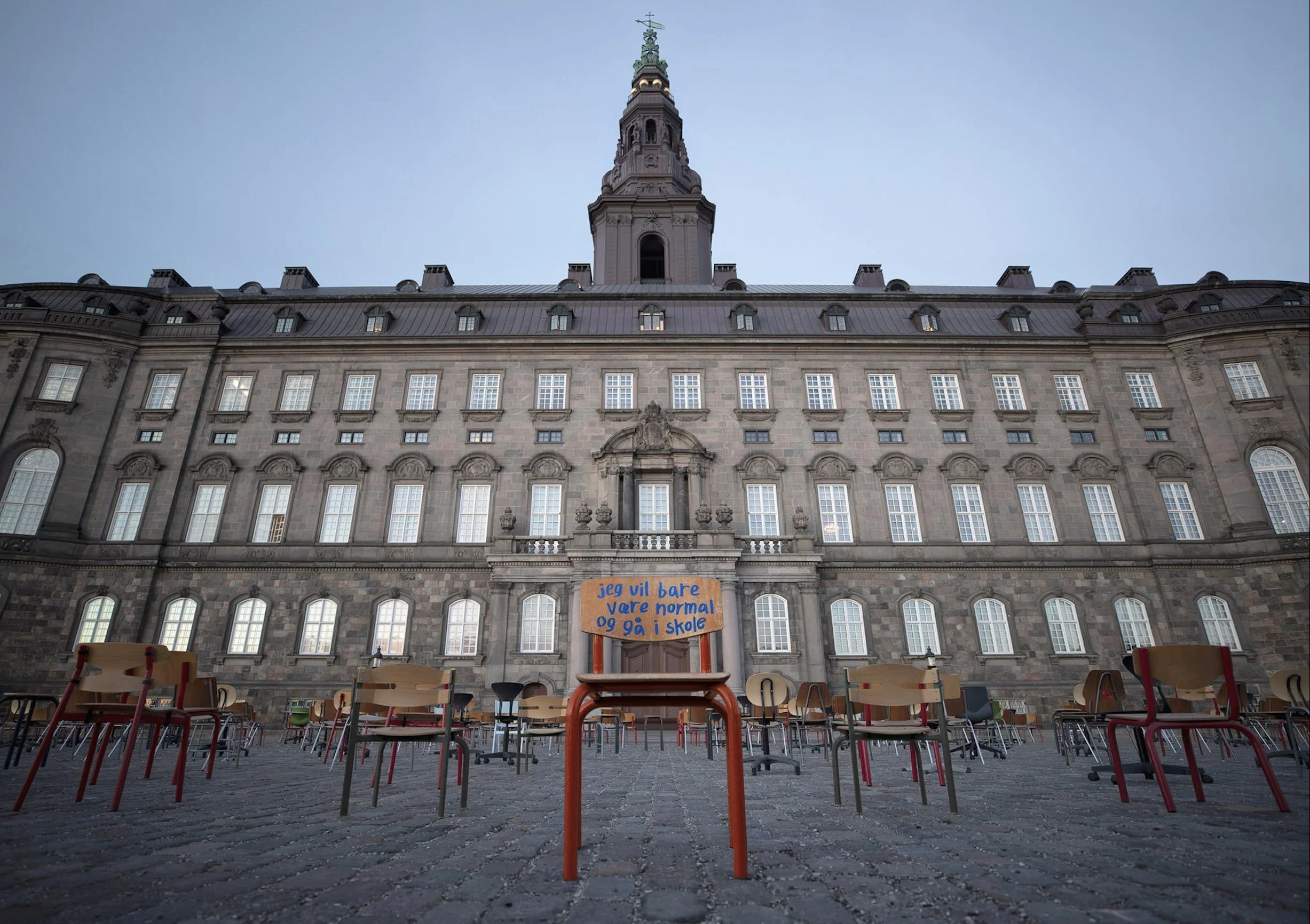 At the opening of the Danish Parliament, together with the Children’s Rights Organization we placed hundreds of empty school chairs in front of the building. Each chair represented a child and was used as a media to tell the reason for their school absence.